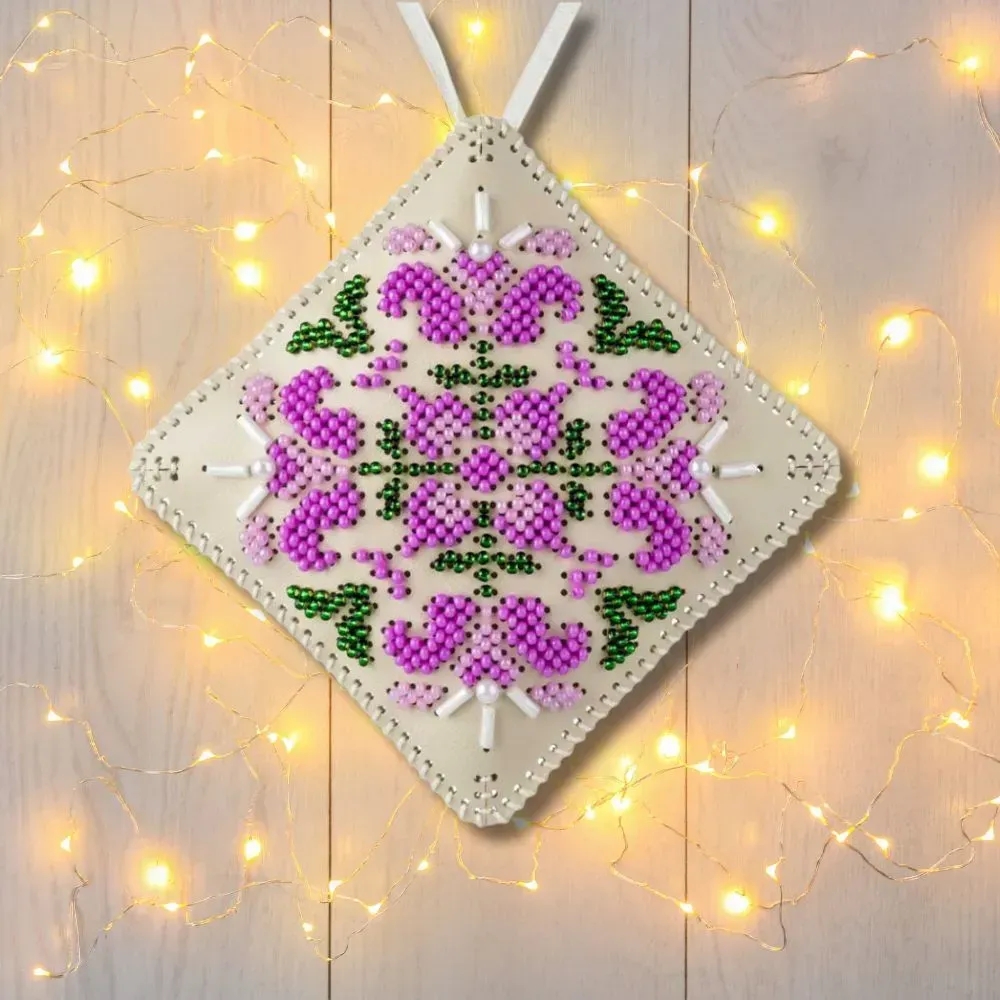 Набор для вышивки бисером на искусственной коже Волшебная страна Елочная игрушка - Подушечка FLBB-170 Св. Бежевый Волшебная страна FLBB-170