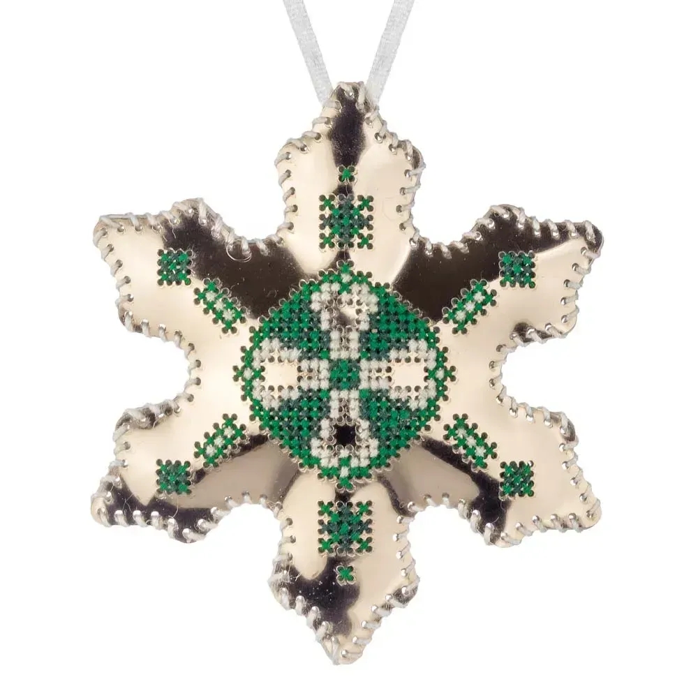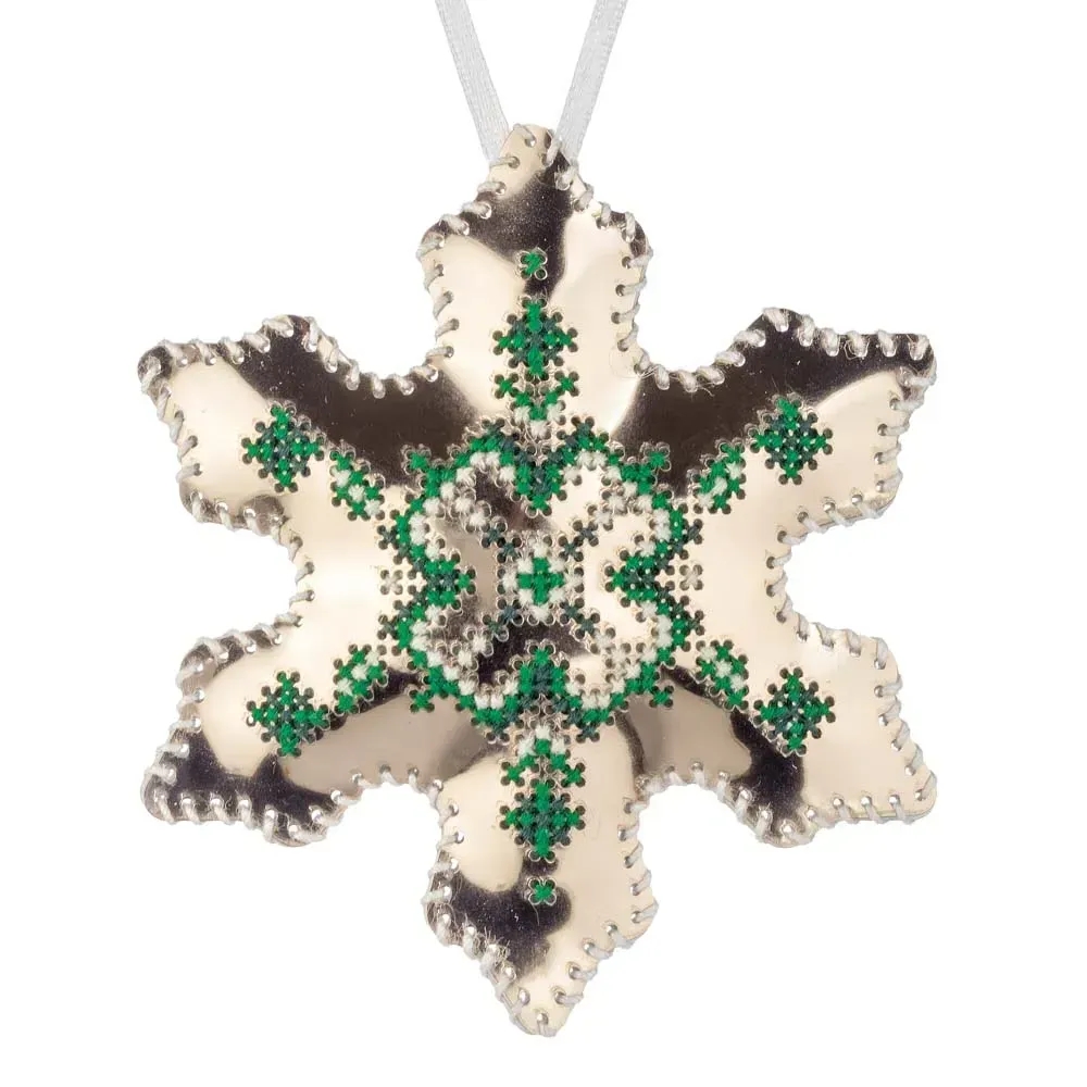 » Набор для вышивки нитками на искусственной коже Волшебная страна Елочная игрушка - Снежинка FLHL-081 Розовое золото