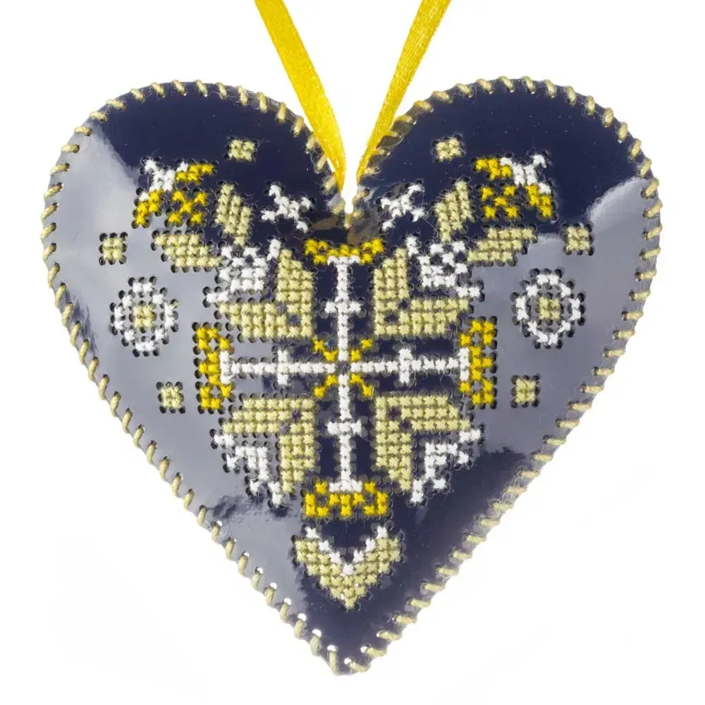 » Набор для вышивки нитками на искусственной коже Волшебная страна Елочная игрушка - Сердце FLHL-089 Синий