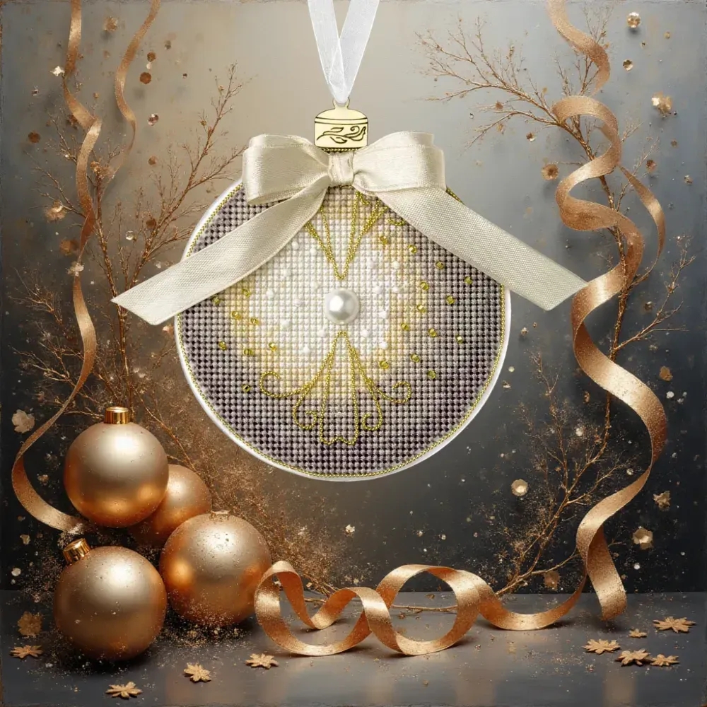 » Набор для вышивки нитками на пластиковой основе Волшебная страна Елочная игрушка - Жемчужный шар FLX-142