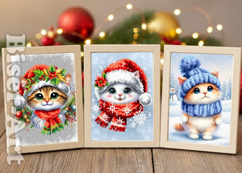 Схема вышивки бисером на габардине Бисер Арт Новогодний котенок 15х21-В142 Biser-Art 15х21-В142