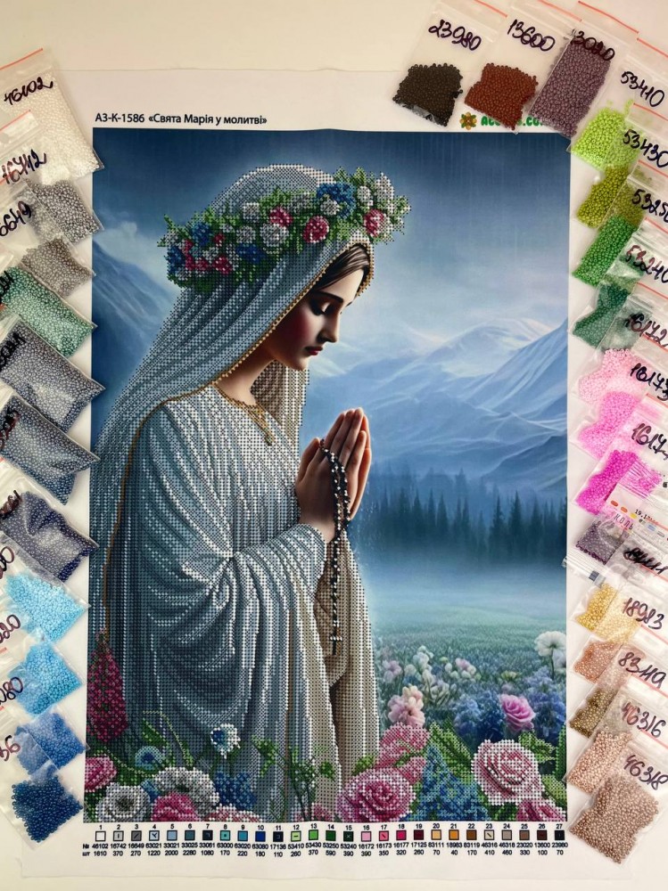 Схема для вышивки бисероме Акорнс Святая Мария в молитве А3-К-1586 Акорнс А3-К-1586