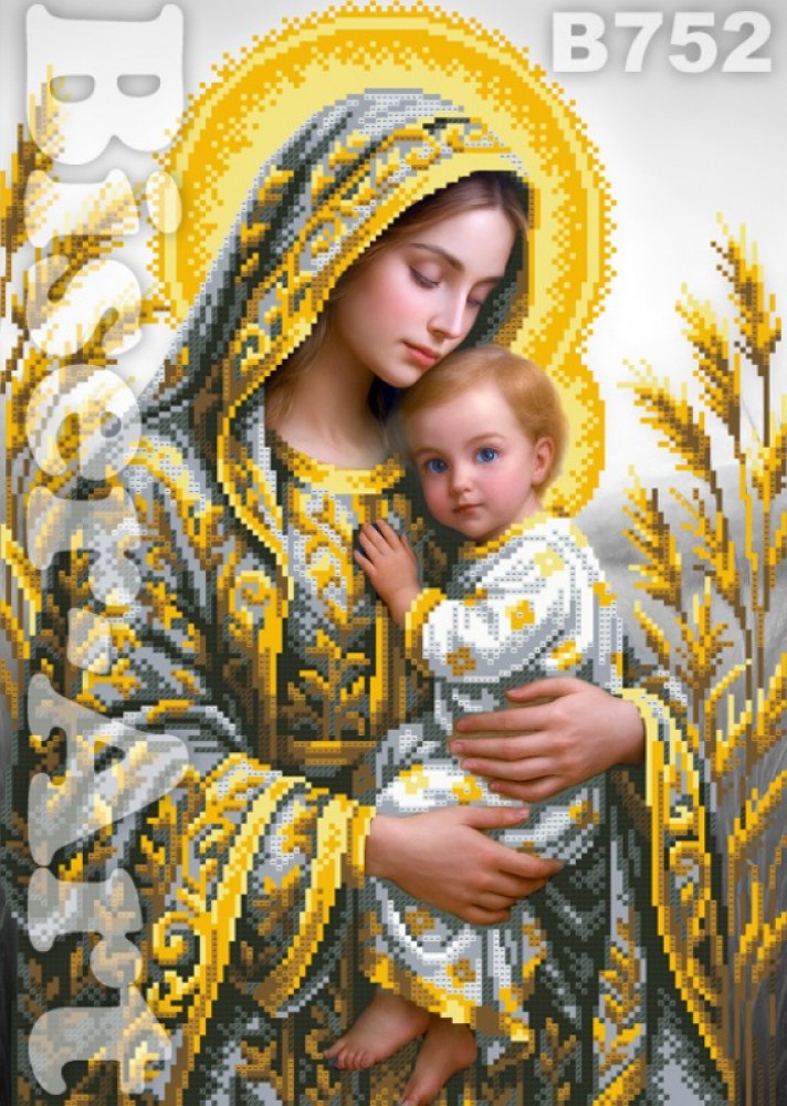 Схема вышивки бисером на габардине Бисер Арт Мадонна с младенцем (золото, серебро) 30х40-В752 Biser-Art 30х40-В752