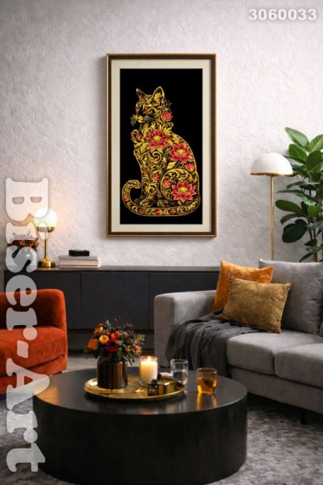 Схема вышивки бисером на габардине Бисер Арт Панно Золотой котик 3060033 Biser-Art 3060033
