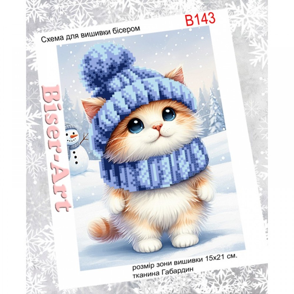 Схема вышивки бисером на габардине Бисер Арт Зимний котенок 15х21-В143 Biser-Art 15х21-В143