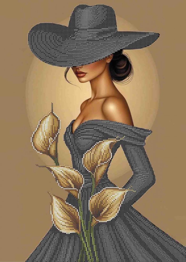Схема для вышивки бисером А3-К-1662 Незнакомка в черном Акорнс А3-К-1662