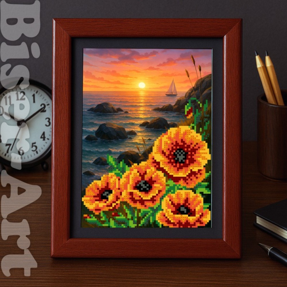 Схема вышивки бисером на габардине Бисер Арт Маки и закат солнца 15х21-В137 Biser-Art 15х21-В137