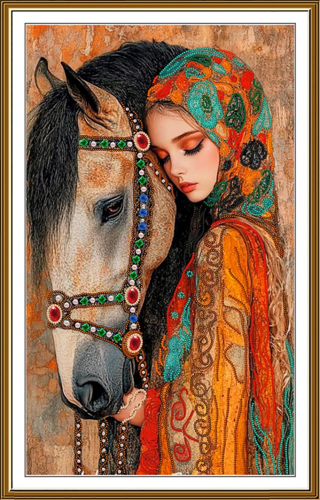 > Набір для вишивання бісером Нова Слобода Дівчина та кінь НК3343