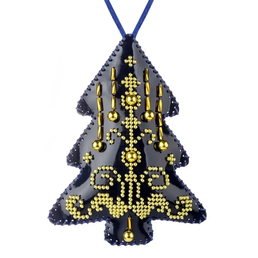 > Набір для вишивки бісером на штучной шкірі Волшебная Страна Ялинова іграшка - Ялинка FLBB-167 Синій