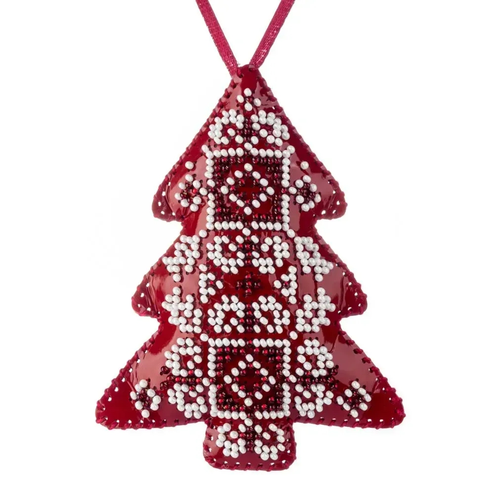 Набір для вишивки бісером на штучной шкірі Волшебная Страна Ялинова іграшка - Ялинка FLBB-166 Червоний