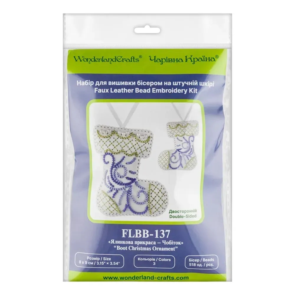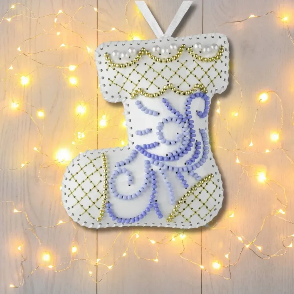 > Набір для вишивки бісером на штучной шкірі Волшебная Страна Ялинова іграшка - Чобіток FLBB-137 Білий