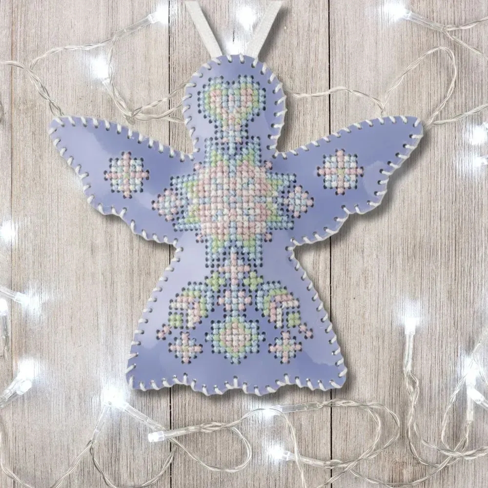 > Набір для вишивки нитками на штучній шкірі Волшебная Страна Ялинкова іграшка - Янголятко FLHL-066 Блакитний