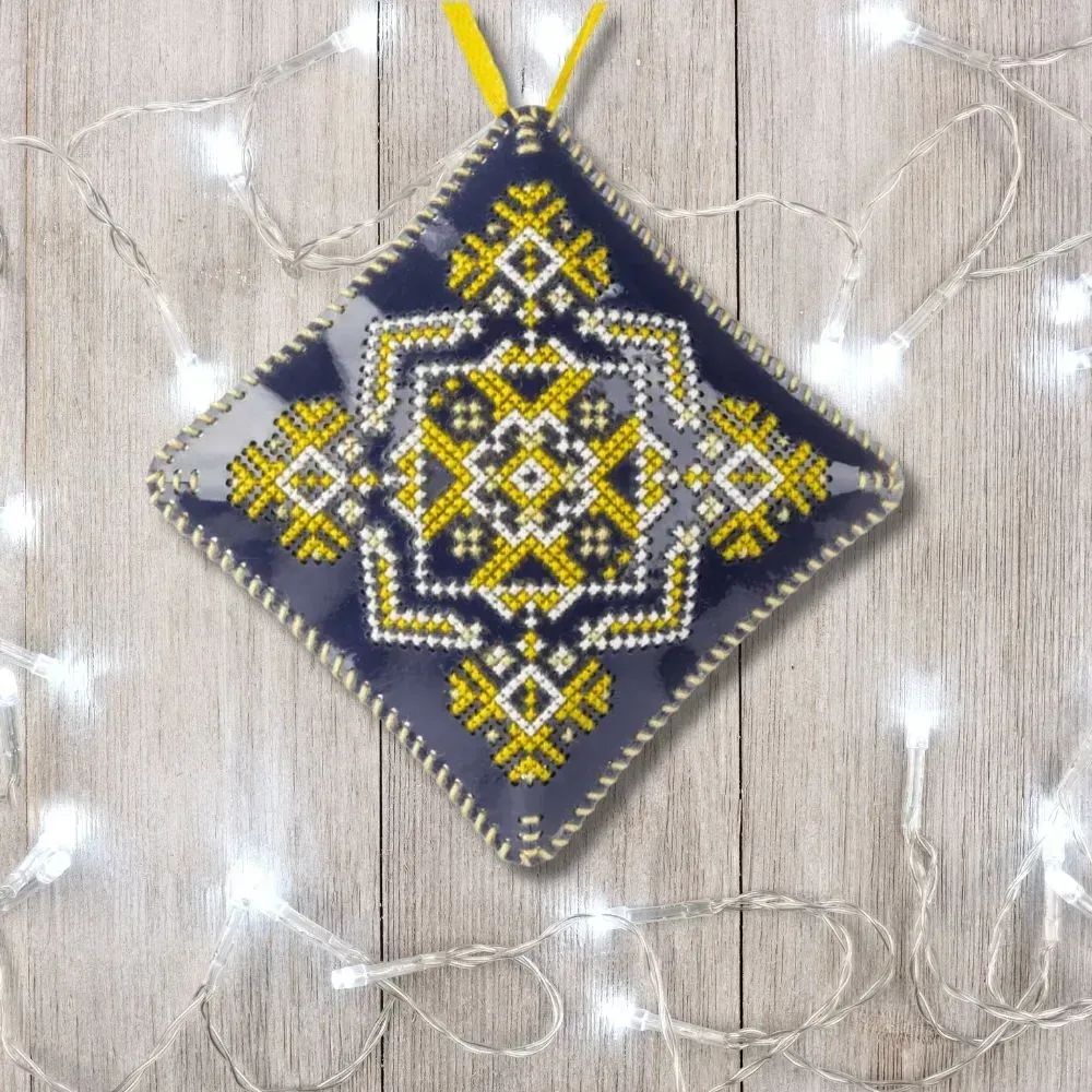 > Набір для вишивки нитками на штучній шкірі Волшебная Страна Ялинкова іграшка - Подушечка FLHL-086 Синій