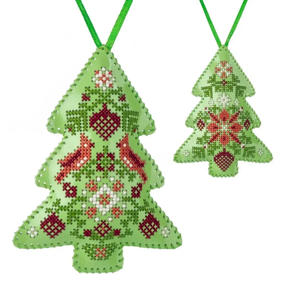 Набір для вишивки нитками на штучній шкірі Волшебная Страна Ялинкова іграшка - Ялинка FLHL-084 Св. Зелений