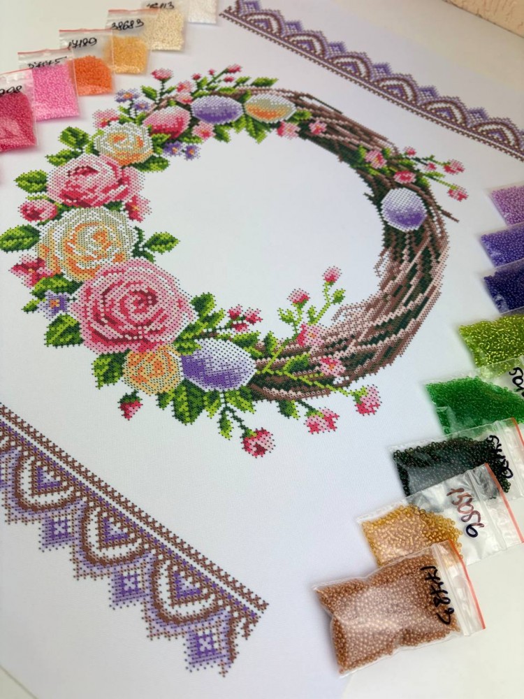Схема вишивки бісером на габардині Бісер арт Великодній Рушник РП-209