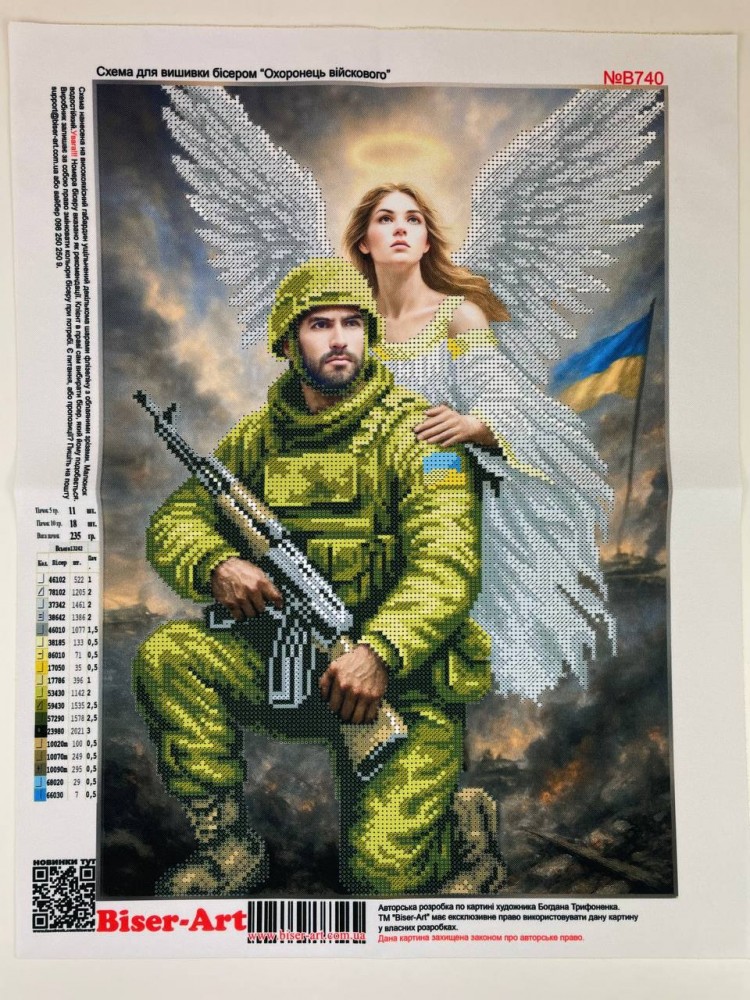 Схема вишивки бісером на габардині Янгол охоронець військового