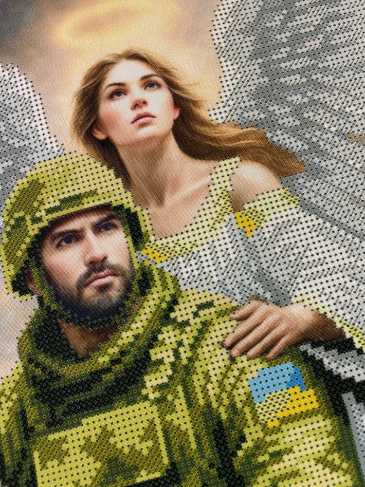 > Схема вишивки бісером на габардині Янгол охоронець військового 2