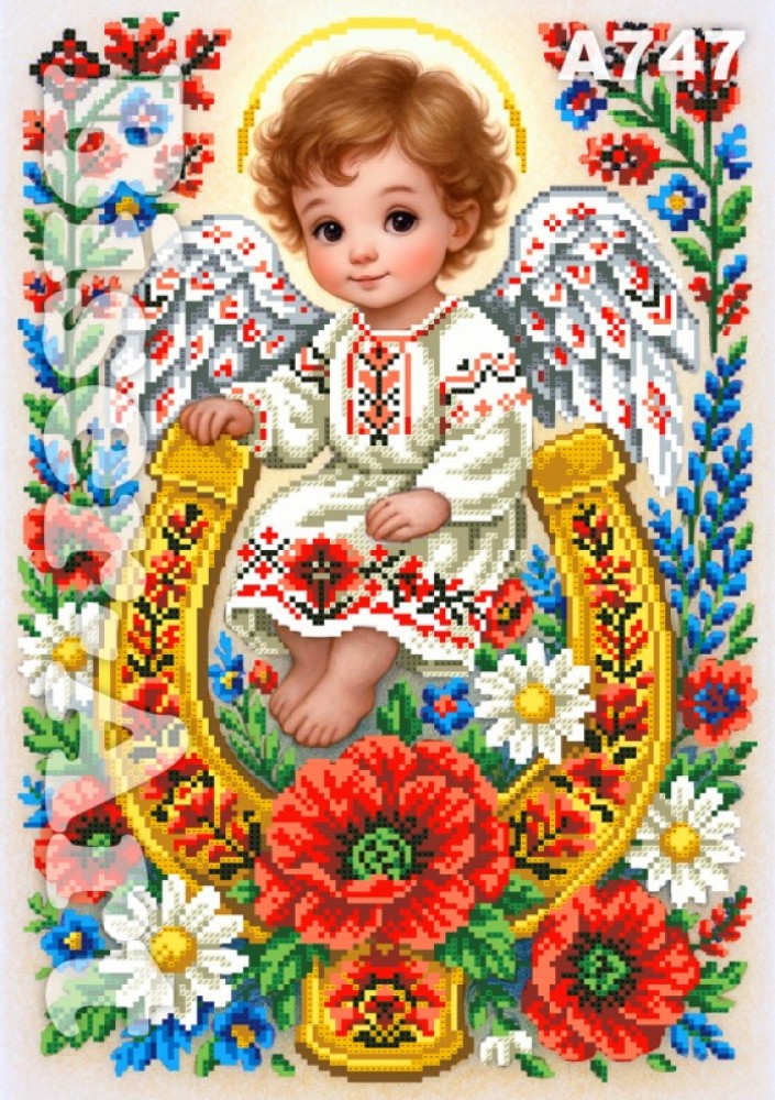 Схема вишивки бісером на габардині Бісер Арт Оберіг з янголятком 30х40-А747