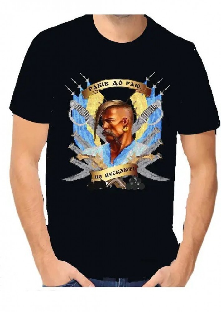 » Мужская футболка для вышивка бисером Рабів до раю не пускають чорная